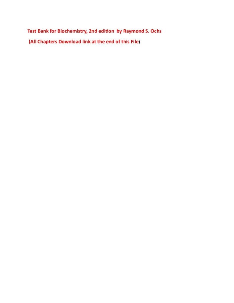 Test Bank for Biochemistry, 2nd edition by Raymond S. Ochs