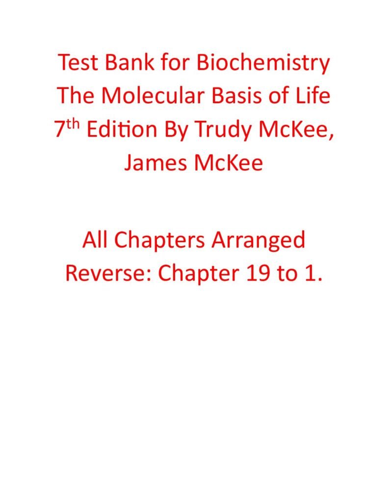 Test Bank for Biochemistry The Molecular Basis of Life 7th Edition By Trudy McKee, James McKee