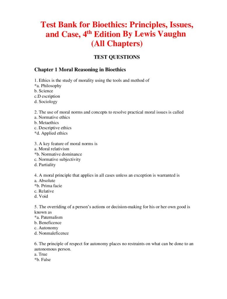 Test Bank for Bioethics, Principles, Issues, and Case, 4th Edition By Lewis Vaughn