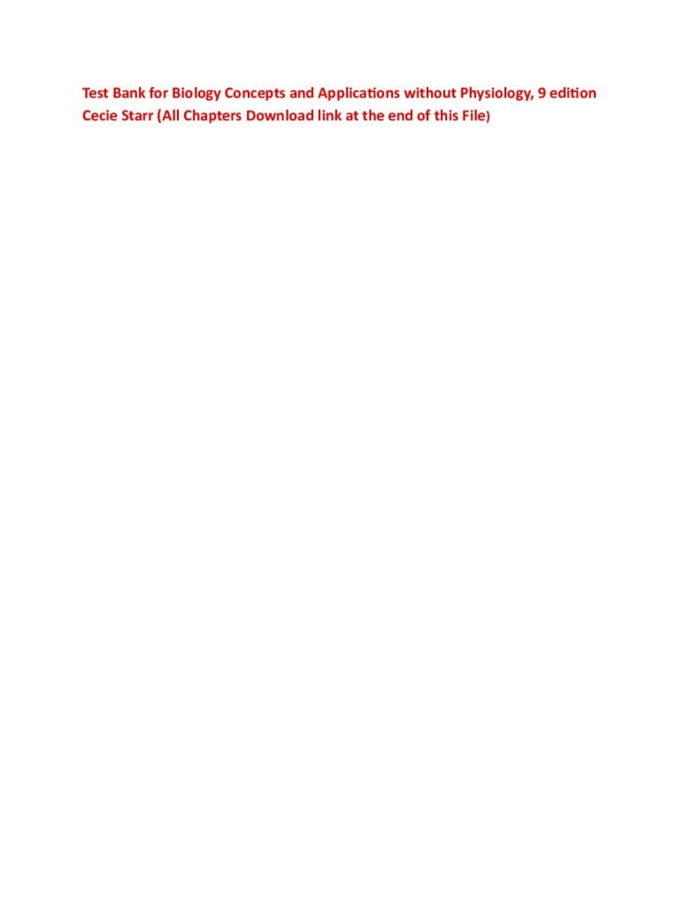 Test Bank for Biology Concepts and Applicaons without Physiology, 9 edition