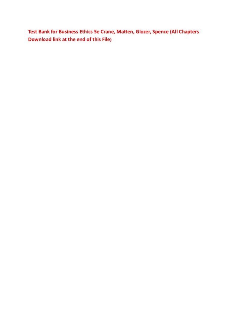Test Bank for Business Ethics 5e Crane, Matten, Glozer, Spence