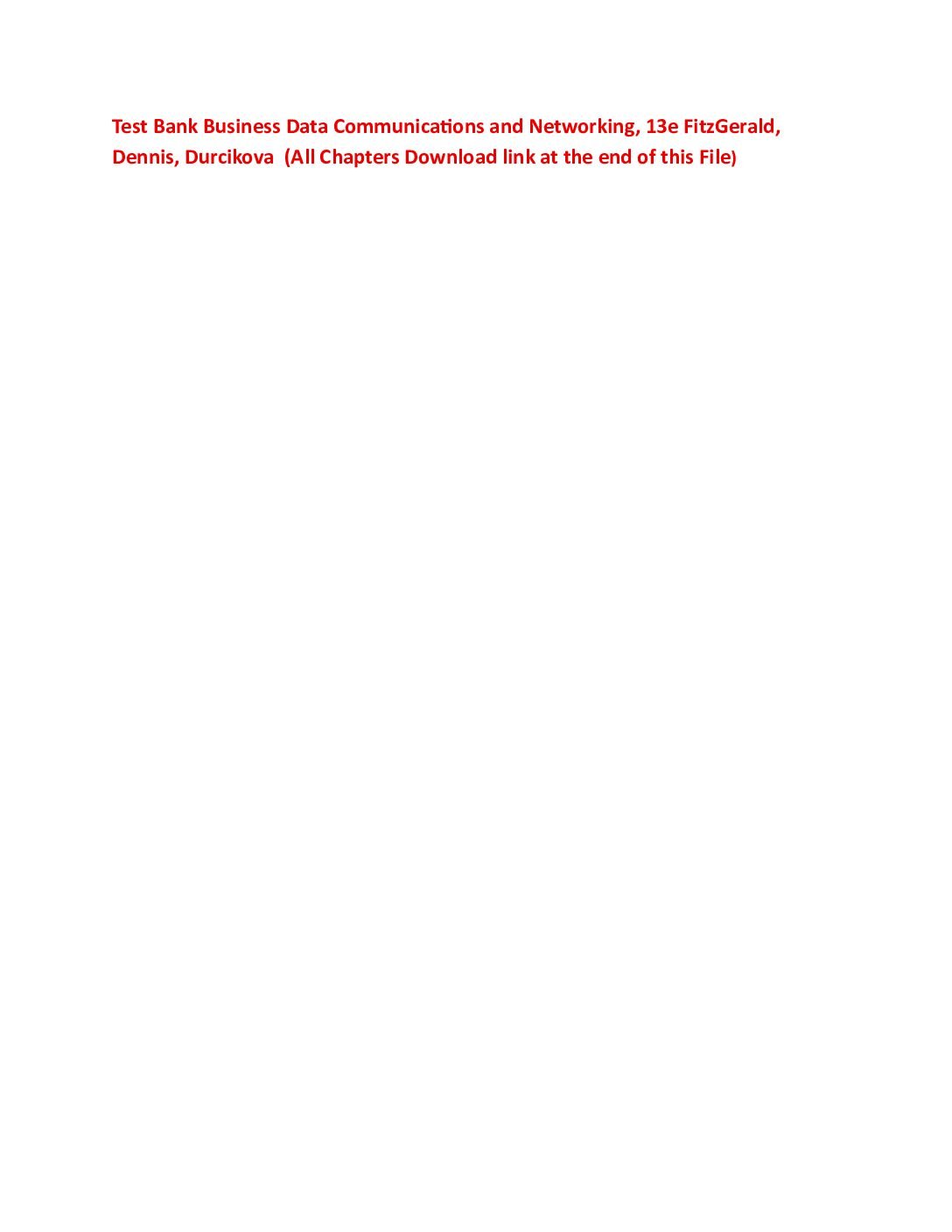 Test Bank Business Data Communications and Networking, 13e FitzGerald, Dennis, Durcikova